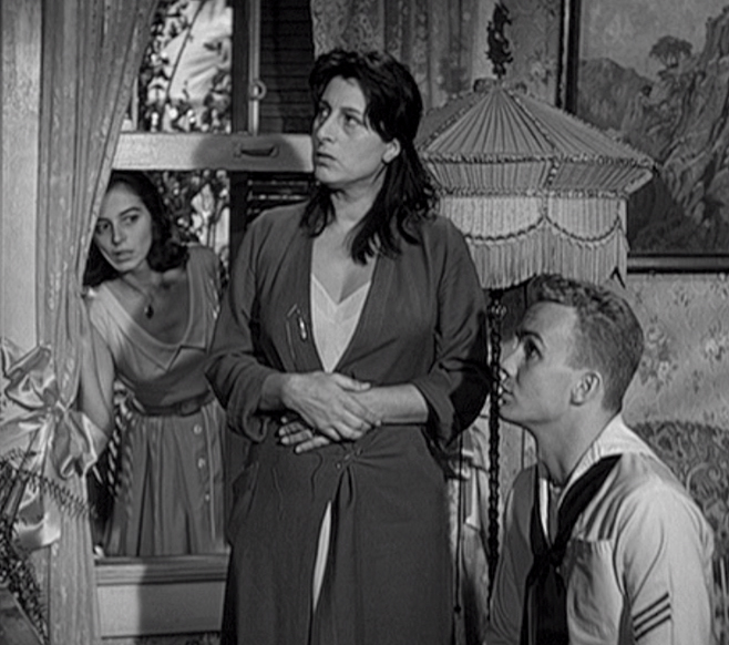 Anna Magnani has always been seen as a force of nature. In her Oscar-winning performance, Magnani is theatrical without being big, straddling being grandiose and being natural. She is fierce, almost unhinged whenever she is attacking someone. However, she is also amusing, even tender, when expressing regret or sorrow. Given that English is not her first language, The Rose Tattoo allows for unintentional moments of malapropisms. Early on, Serafina is told by one of her fellow Italian neighbors, "You dressed for a party?". "No, I'm dressed for a big celebration", Serafina replies. She did not mean it as a joke or as sarcasm. It is a credit to Anna Magnani that she made it sound as if Serafina was actually answering the question and not just being silly.